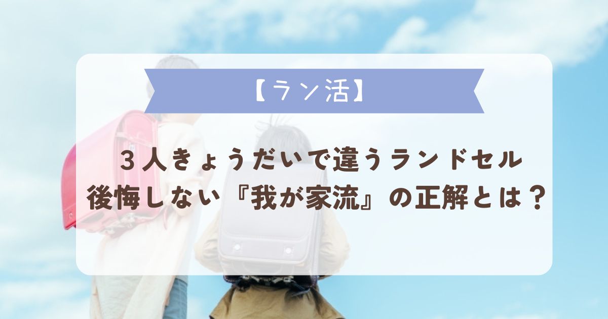 我が家には3人の兄弟がいますが、振り返ってみるとその選び方は三者三様。5年間にわたるラン活を経て、ようやくたどり着いた**「後悔しないための正解」**をお伝えします。